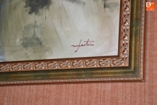 Por su obra, José Antonio Martín Santos ?que procedió a firmar su obra antes de que ésta fuera colgada- ha recibido 2.500?. En el cuadro, titulado Felipe VI con Ciudad Rodrigo, se pueden ver el Parador de Turismo de Enrique II de Trastámara y la Catedral de Santa María, a la izquierda y a la derecha, respectivamente, de Felipe VI.