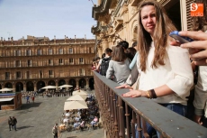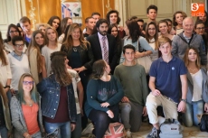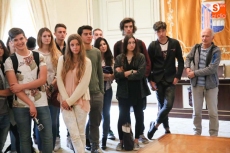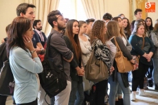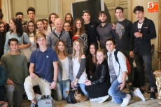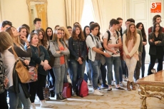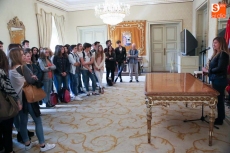 El salón de recepciones del Ayuntamiento de Salamanca ha acogido este jueves la visita de un grupo de 54 estudiantes italianos que estudian español en el colegio Delibes. La concejala de Educación, Carmen Sánchez Bellota, ha sido la encargada de recibir a este grupo de estudiantes.