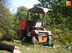 Al parecer, el dumper se había despeñado por la falda de la montaña hasta caer en la carretera de la parte inferior, cruzándola, mientras el conductor del vehículo quedaba en la ladera perdido entre las escobas y los helechos.