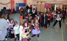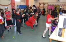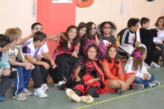Aprovechando el tramo de la mañana en que los alumnos de Primaria estaban en el recreo, hasta el gimnasio se acercaron los alumnos de Educación Infantil, para hacerse también fotos temáticas. En el caso de los alumnos de Infantil, también tuvieron -en sus zonas de clase- sus propios juegos durante la mañana, con un lanzamiento de aros, un juego de las sillas y un taller de maquillaje.