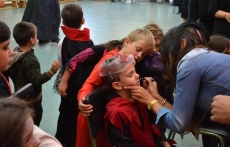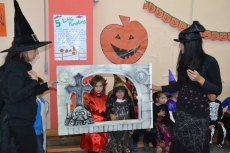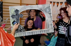 Asimismo, se había montado una zona de 'photocall', donde los alumnos se realizaron fotografías por clases y por parejas con distintos motivos alusivos a Halloween, que decoraban todo el gimnasio. Como complemento, durante toda la mañana no dejaron de sonar canciones de 'miedo y terror'.