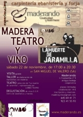 El proyecto de fusión de experiencias del taller 'Maderando' de San Miguel de Valero inicia un nuevo curso presentando una nuevo taller en el que se fusionará la madera, el teatro y el vino. Será el próximo 22 de noviembre cuando el artesano local Ángel Pisonero abra las puertas de su taller de carpintería, ebanistería y forja para los que quieran participar en una iniciativa en la que se podrá complementar el trabajo en madera, con elaboración de marionetas, una sesión de teatro a cargo de la compañía Lombó Teatro que representará la obra 'La muerte en Jaramilla' y una degustación enológica de vinos de la Denominación de Origen Protegida Sierras de Salamanca