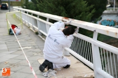 La imagen del puente Príncipe de Asturias mejora con el repintado de sus barandillas