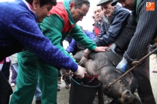 La carne sobresale ya de artesas y barreños, es momento en que el anfitrión muestra su generosidad echando sobre las brasas unos trozos de magro que quitarán la ansiedad ante tanto manjar. La jarra de vino corre de mano en mano y los niños juegan alegres al aro al saber que por un día habrá algo más que tocino entre la barra de pan.