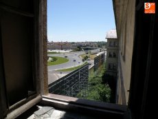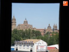 El amor es luz, música, sueño..., y un poco más allá, el mensaje de la pared cambia radicalmente. La ciudad vigila que cumplas tu condena. No sabemos si las que vigilan son las torres de la Catedral de Salamanca que se dejan otear desde las hoy desvencijadas ventanas.