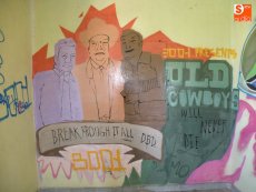 La luz de una mañana cualquiera de otoño se cuela por lo que un día fueron los ventanales de un imponente edificio. El olvido que acompaña al ineludible paso del tiempo ha convertido a este espacio, hoy en ruinas, en un improvisado y escondido álbum de arte callejero. Superado el momento inicial de sorpresa, a los ojos del visitante se descubre un lugar plagado de graffitis, ese rompedor, e incluso incomprendido arte capaz de convertir unas elementales paredes en lienzos para contar una historia o, simplemente, para plasmar alguna frase poética. Curiosa mezcolanza entre la expresión artística más urbana y la sobriedad de las piedras del edificio.