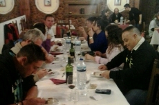 Tras una breve clase de toreo de salón en la que torero vizcaíno mostró varios lances taurinos, los asistentes dieron cuenta de una excelente cena para continuar con el sorteo de un capote de brega y un cuadro realizado por el pintor vitigudinense Tomás B. Villoria, además de varios regalos.