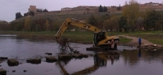Gracias a la excavadora, también se retiraron del agua varios troncos de árboles que habían quedado enganchados en la zona.