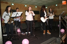 La cena comenzó con un cóctel amenizado por la actuación de un grupo de alumnos de la Escuela Municipal de Música. Después de la bienvenida por parte de la organización, subieron a los salones para disfrutar del ágape preparado. "Toda la decoración la hemos hecho un grupo de voluntarias, en los colores rosa y verde en representación de la Asociación Española Contra el Cáncer; además hemos regalado unos marcapáginas creados por nosotras, un corazón rosa para las mujeres, y una flor verde para los hombres. Ha sido mucho trabajo, con muchos nervios, pero al final todo ha salido muy bien, y estamos muy contentas por cómo ha resultado todo", explica María Jesús Calzada.