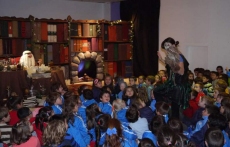 El cárabo, una serpiente, una lechuza, una rata y un autillo han aparecido de entre los libros de la biblioteca del Mago Gründell y han estado a la vista de los escolares que ya han disfrutado hoy de los Cuentos Vivos.