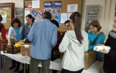 Los alumnos y cuadro docente del IES Ramos del Manzano, de Vitigudino, participaron este jueves en un desayuno saludable y solidario organizado por la Asociación de Madres y Padres 'Los Sierros' a favor de los huérfanos de fallecidos por ébola.