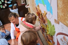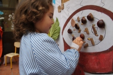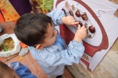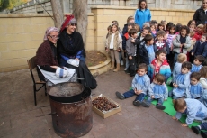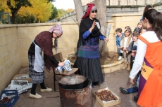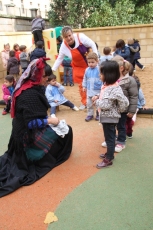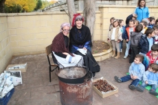 Para este taller dedicado al otoño, que complementa una intensa actividad de aula a través de diversas unidades didácticas, las profesoras y madres acudieron ataviadas con la indumentaria propia de las castañeras del siglo XX.