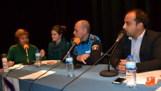 Laura Martín, socióloga de la Asociación de Mujeres Plaza Mayor, María Ángeles García, Presidenta en Salamanca del Colegio de Psicólogos de Castilla y León y psicóloga de la Oficina de Asistencia a las Victimas de los juzgados de Salamanca, José Antonio Florín, agente de la Policía Local y Felisa Gómez, trabajadora social del Ayuntamiento, participaron en una mesa de trabajo dirigida por Raúl Blázquez, en la que expusieron de una manera muy didáctica las diferentes actuaciones que se desarrollan en sus áreas de trabajo, respondiendo así a numerosas dudas que existen en torno a las diferentes plataformas de ayuda y protección a las victimas existentes.