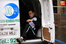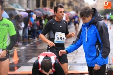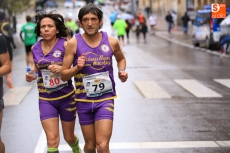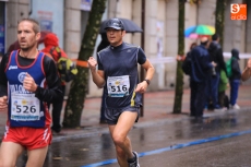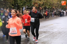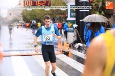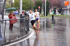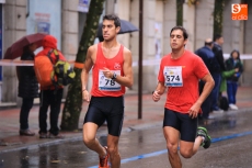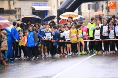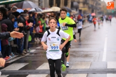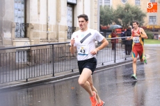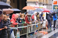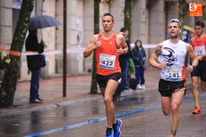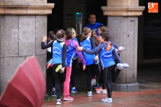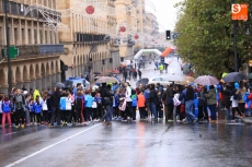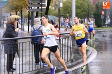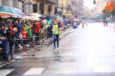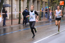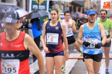 Las calles de Salamanca acogieron ayer una nueva edición de la Carrera Pedestre, prueba que se recuperó el pasado año tras celebrarse en la década de los 70. Javier Alves y Pilar García fueron los triunfadores en un recorrido de unos 5 kilómetros y que estuvo caracterizado por la persistente lluvia que cayó por la mañana en la ciudad.