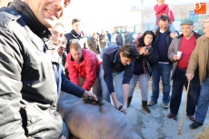 Más de 150 personas se dieron cita este sábado en la plaza de Saucelle para celebrar la sexta Matanza Popular que organiza la Asociación Rural de Saucelle (Arusa) y que tiene como finalidad dar a conocer entre la población, especialmente entre los más jóvenes, una tradición cada vez menos frecuente en los pueblos aunque en el pasado constituyera uno de los principales recursos de las familias.