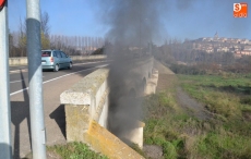 Debido a la intensa humareda que fue saliendo de debajo del Puente (por sus dos laterales), la Policía Local se encargó de que los vehículos que iban llegando a ese punto aminoraran la velocidad para evitar accidentes.
