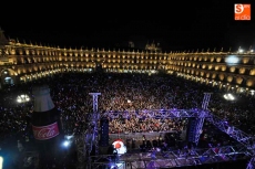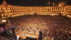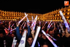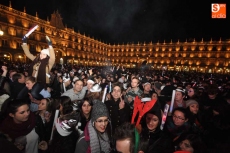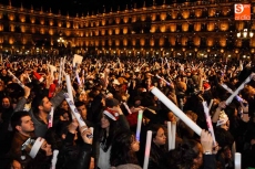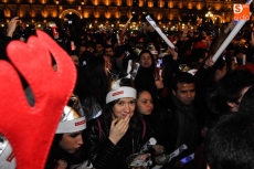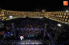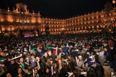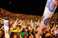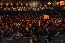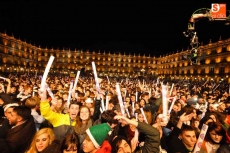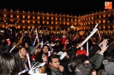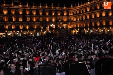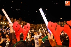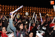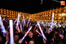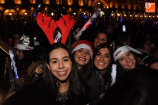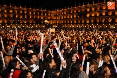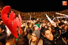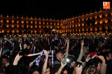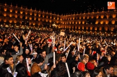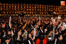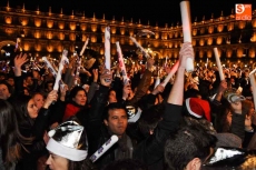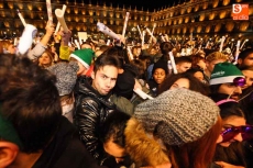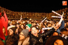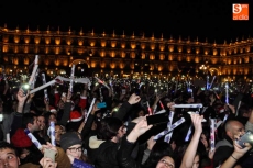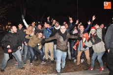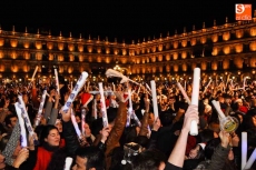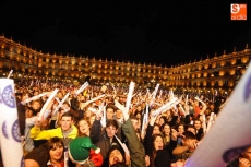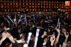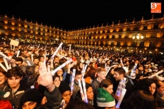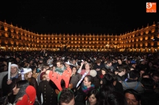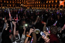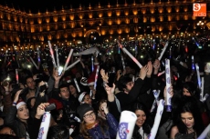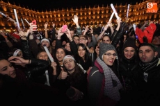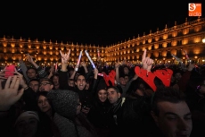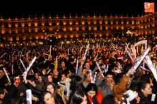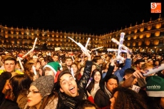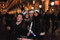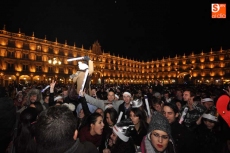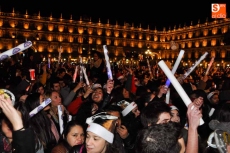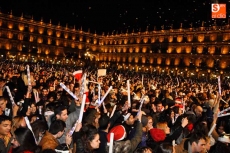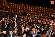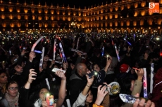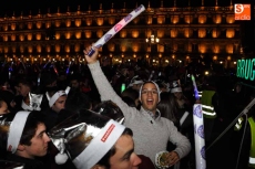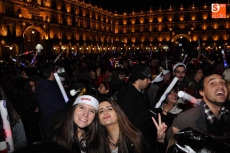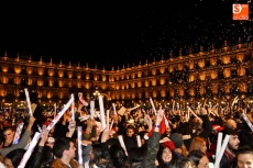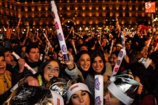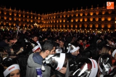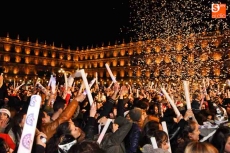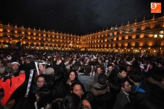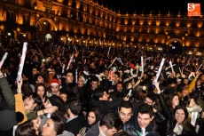 Los jóvenes que abarrotan la Plaza Mayor han celebrado el nuevo año universitario tomando las tradicionales uvas en la décima edición de la Nochevieja Universitaria, que ha congregado en la ciudad a miles de personas llegadas de todos los puntos de España.