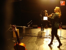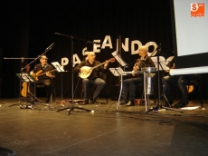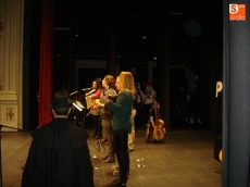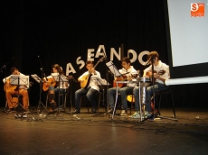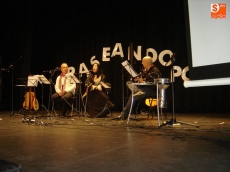 Una vez abierto el acto, los alumnos de Javier Colmenar Osuna, la nueva agrupación formada por él 28 Quartet Band, y compañeros de Aulaga Folk, ofrecieron un concierto dinámico y entretenido, animado con la proyección de fotografías antiguas de Béjar.