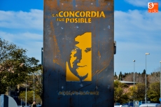 La nueva glorieta dedicada a Adolfo Suárez recuerdan desde hoy en Salamanca que "La Concordia fue posible", como se cita en el monumento dedicado al ex presidente del Gobierno, un prisma de tres metros de altura por uno y medio de ancho en cada una de sus caras que se ubica junto a la facultad de Derecho inaugurado esta mañana por el Presidente del Congreso de los Diputados, Jesús Posada, y del alcalde de Salamanca, Alfonso Fernández Mañueco.