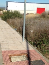 Demanda de UPyD, que acompañan de las fotografías adjuntas, ante lo que califican como "estado lamentable de las instalaciones, con aceras sin tapa de electricidad o de alcantarillado, farolas inclinadas a punto de caerse y diversos desperfectos que suponen un riesgo extremo para cualquier viandante".
