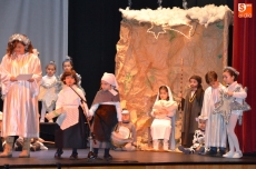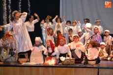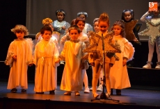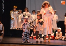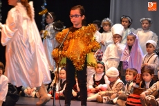 En la tarde del miércoles fue turno para las actuaciones de los alumnos de Educación Infantil, para 1º de Educación Primaria, así como para los grupos de Secundaria. Ante un Teatro Nuevo lleno a rebosar, y tras la bienvenida por parte de la directora del centro, la hermana Asunción Rodríguez, la tarde la abrieron los alumnos de Educación Infantil 'montando' el Portal de Belén, con su San José y Virgen María, sus animales, sus Reyes Magos, sus pastores, sus lavanderas y sus ángeles y estrellas.