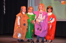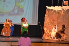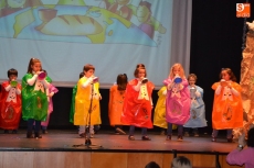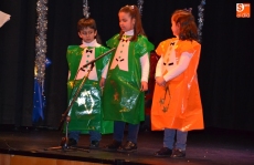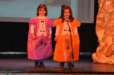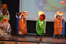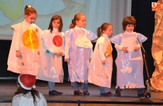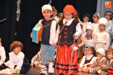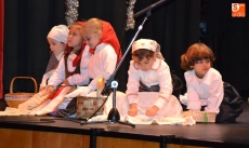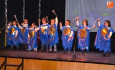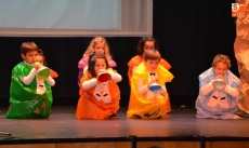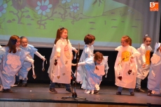 Una vez estuvieron todos sobre el escenario, cantaron canciones. Concluido este número, permanecieron en el escenario San José y la Virgen María para presenciar el resto de números. En lo que se refiere a los alumnos de 1º de Educación Primaria, pusieron en escena un cuento, a lo largo del cual fueron cantando varias canciones con coreografías incluidas.