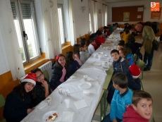 Por turnos, los niños y niñas acudieron al comedor del colegio a degustar un chocolate calentito y un trozo de roscón de Reyes, a cargo de las madres y padres. A su vez, Papá Noel, visitaba cada una de las clases para entregar a cada alumno una bolsa de chuches.