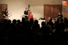 Dentro del programa 'Dead at Home', la biblioteca de la Casa de las Cochas ha acogido este sábado la presentación del trío de jazz 3SIDES, formado por Óscar López al contrabajo, Christian Murgui, percusión y clarinete y Fernando Aguado, saxo tenor y soprano.