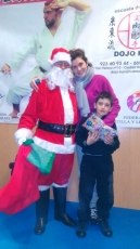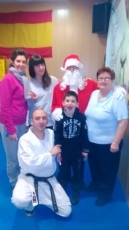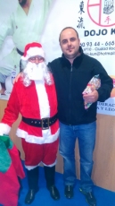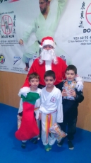 Alrededor de una veintena de karatekas de edad alevín e infantil tuvieron la oportunidad de conocer de cerca a Papá Noel, quién les hizo entrega de unas bolsas de golosinas antes de irse a su gran noche anual de trabajo.