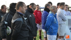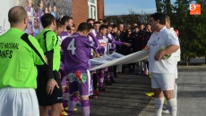 Andes de comenzar el encuentro ambos conjuntos saltaban al césped portando una pancarta de homenaje a Ramón Pérez con la que se iniciativa un emocionante acto en el que sus hijos recibieron de manos del alcalde de Peñaranda una placa conmemorativa, gesto que la familia quiso agradecer emocionada ante el gran numero de aficionados que quisieron estar presentes en este sentido recuerdo.