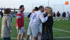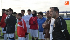 Sobre el terreno de juego, el actual equipo filial del CD Peñaranda y un nutrido grupo de veteranos capitaneados por Antonio Pérez, hermano de Ramón, ofrecieron un encuentro amistoso arbitrado por los que fueron compañeros de campo y banda tanto en futbol como en futbol sala.