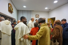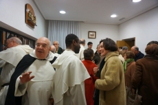 El periódico de The Sun, durante 50 años, hasta que desapareció, abría su portada en Navidad con esta historia. Lo esencial debe ser recordado y repetido cara año, nos recordó la el nacimiento y encarnación de un niño que es el salvador del mundo. Por otro lado, recordó la creación de la orden por Santo Domingo y su confirmación por el Papa este día 22 de diciembre hace 797 años. Recordó el carisma de la orden como es la profundización en el conocimiento, no para hablar a los eruditos, sino para hacer sencilla y universal, para que llegue a todos la palabra del Evangelio. Recordó que es un carisma de la Orden la pobreza, estar abiertos a todos y a todo con humildad. Por último, subrayo la fraternidad entre los hermanos, sobre todo en este año dedicado a la vida Consagrada. Felicitó las Navidades y el aniversario de la creación de la orden. La oración de Vísperas terminó con el canto de la Salve y el himno a Santo Domingo. Terminada la oración se compartió con las monjas dominicas contemplativas de las Dueñas, unos bocaditos y unos dulces.