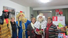 Los Reyes Magos reparten juguetes en la sede del PSOE