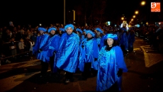 La ilusión de revivir y compartir la noche más mágica del año, con la esperada llegada de los Reyes Magos, no desaparece con la edad, sino todo lo contrario. Los más pequeños han disfrutado, boquiabiertos en muchos casos, el derroche de magia, ilusión y fantasía que ha acompañado al séquito de sus Majestades de Oriente en su recorrido por las calles y plazas de Salamanca, hasta su llegada a la Plaza Mayor.
