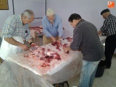 La fiesta de la matanza prosiguió por la tarde en la sede de la Asociación de Mayores con el despiece total, el fregado de cazuelas y otros utensilios y las partidas de cartas. Los jubilados continuarán mañana por la mañana con la preparación de los adobos, un cocido para los socios y una nueva sesión de partidas de cartas.