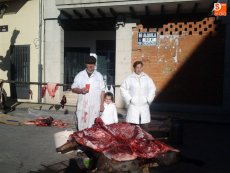 Después de chamuscar al marrano, los matarifes iniciaron el proceso de despiece, mostrando cómo hacerlo y describiendo cada una de las piezas al público. A continuación, se fueron colocando en unas barras de madera, separando las carnes, paletas, jamones, tocino, etc?