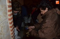 Una vez terminaron de comprar los panecitos todas las personas que estaban en la cola ?posteriormente seguirían llegando de forma aislada más mirobrigenses-, fue el momento de desplazarse hasta la zona del Regato Cachón, donde se prendió la tradicional hoguera de San Antón.