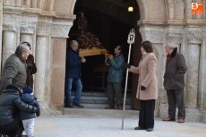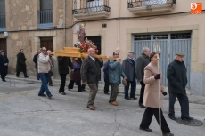 Tras una pequeña vuelta por el barrio ?controlada por la Policía Local-, la imagen regresó al templo, donde Celso Martín Santos presidió una Eucaristía. A su conclusión, llegó uno de los momentos más esperados, la rifa de los aguinaldos, compuestos por embutidos, aceitunas y hasta un gallo. Los principales encargados de sacar las bolas que conformaron los números premiados fueron niños, que este año pudieron participar en la fiesta al ser sábado y no tener clase.
