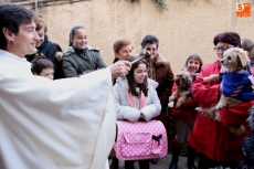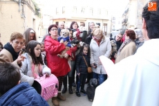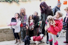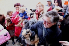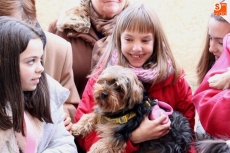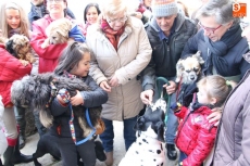 Una vez finalizada la eucaristía, el sacerdote procedió a realizar la bendición a las mascotas a las puertas de la iglesia para procurarles la atención de Dios tanto a ellos como a sus dueños. Aunque no se trate de una de las fiestas de mayor arraigo en la villa, los albenses asistieron con sus mascotas acompañados en su mayoria por sus respectivos perros, algunos abrigados para protegerse del frio.