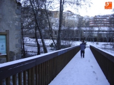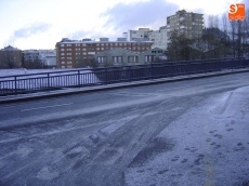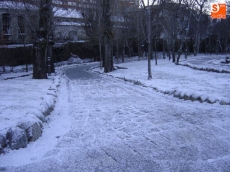 La ciudad de Béjar ha amanecido cubierta por un manto de nieve helada que convertía las calles en pistas de patinaje, en las que los escasos ateridos transeúntes se afanaban por guardar el equilibrio. Sin embargo, según ha ido avanzando la mañana, las temperaturas han ido subiendo y la sal ha hecho el resto.