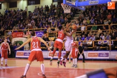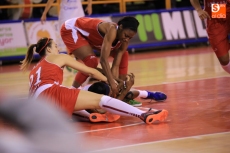 El choque comenzó muy igualado con canastas para los dos equipos, sobre todo en contraataques. Mediado el primer cuarto el marcador registraba un 10-13 que explicaba las intenciones de las turcas. Robinson y Murphy volvían a ser los ángeles salvadores de las azulonas y con un 5-0 ponían a su equipo por delante (15-13, minuto 6). Pero las turcas estaban bien posicionadas. La táctica defensiva maniataba a la locales y la desesperación de Alberto Miranda se tradujo en una técnica que daba a las turcas su máxima renta al final del primer cuarto (22-27).
