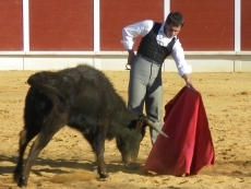 El joven alumno, contacta con los trebejos, los toca, siente emoción, mira a los demás aspirantes. Alguno más veterano, ya debuto con la vaca o becerro, estos bromean con él, y le contaran de sus nervios ante la vaquilla en su primer tentadero, también le aconsejaran, cada uno a su manera, para que el bisoño aprendiz no defraude a sus mentores, familiares y amigos. Llegara un día a su casa alborozado y nervioso, relatando sus progresos en la escuela. "(Papá?¡ Mamá?¡ hoy he toreado con la muleta, él director me dice "(-así, así, vas bien chaval-)" y duerme soñando con que llegue otro día para que se fijen en él, aunque sea para corregirle. Ha comenzado una ilusión, una trayectoria, una carrera ardua, exigente, disciplinada y espinosa llena de avatares y sobresaltos? ¡Pero él dijo, que quería ser torero! Ya, comienza el mozo a sentirse así -. Ya ha debutado en el campo -. Ya tiene traje campero -. Y, de luces -. Y, capote, muleta, espada y descabello -. Ya le aplaudieron en la tienta -. Y, le han dicho, bien torero -. Tanto es así que, por las ferias, en su pueblo matara un becerro -. A partir de ahora se sentirá más torero -. Tendrá en un Mesón su peña que enmarcara sus fotos -. Su cinta de vídeo, grabara su recuerdo primero -. Continuara su carrera y, matara más becerros ? ¡"(LO VES PAPÁ, YA ME CONOCEN, SOY TORERO)"!