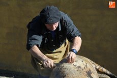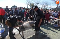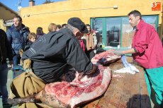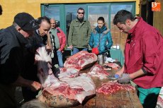 El maestro chacinero de La Encina, Ángel García, junto a Lorenzo y varios colaboradores más, daba cuenta ?un año más? de un buen cochino negro de más de 13 arrobas, manteniendo cada uno de los pasos de la matanza tradicional, pues son otros objetivos de estas Jornadas mantener y divulgar el acervo cultural que ha rodeado durante siglos este acto, un proceso que pasó de ser un rito en civilizaciones anteriores a elemento fundamental para la supervivencia del hombre hasta no hace demasiadas décadas.