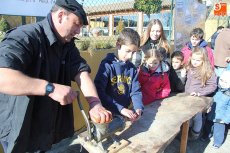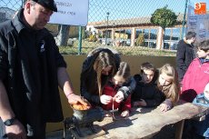 Entre tanto, el público asistente pudo degustar el vino de la DO Ribera de Duero, Tinto Roa Crianza, con costilla asada o chichas, mientras los más pequeños conocían su primer chorizo en la máquina de 'embusar'.