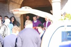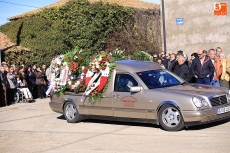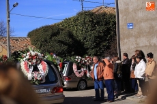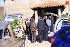 Los coches fúnebres llegaban a Castraz de Yeltes a las 13.00 horas, municipio del que era natural M.L.C.H. Los servicios Funerarios Virgen de la Vega realizaban una parada a la entrada del municipio para adornar con decenas de coronas los vehículos funerarios que trasportaban a madre e hijo.
