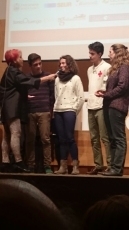 El premio concedido al IES Fray Diego Tadeo fue recogido por tres de sus alumnos, Pablo Ajenjo, Pilar Pérez y Luis Castilla, y por la orientadora del centro, Pepi Martín Choya.