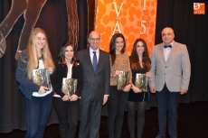 La escenografía del Teatro Nuevo tuvo una novedad respecto al año pasado, ya que el alcalde Javier Iglesias, y el concejal de Cultura Enrique Cencerrado estuvieron acompañados de 4 de las jóvenes ?una no pudo asistir- que se han ofrecido para acompañar al Pregonero Mayor, Vicente del Bosque, en la tarde-noche del Viernes de Carnaval.