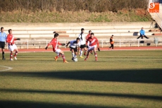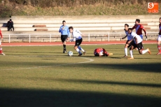 El partido se vio muy condicionado por el buen inicio blanquinegro. A los ocho minutos de juego el Salmantino ya vencía por 2-0, mientras que el Villa de Simancas apenas se había posicionado sobre el terreno de juego.