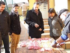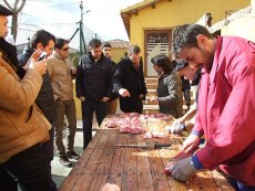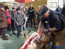 Pero antes de la entrega de la placa que acredita a Marc Joli como Matancero de Honor, los maestros matanceros de La Encina volvían a dar cuenta de un buen marrano ibérico mostrando cada paso de la matanza, momentos en los que no faltaron las degustaciones de costilla asada, chichas y otras piezas del cerdo, un aperitivo para lo que vendría después.