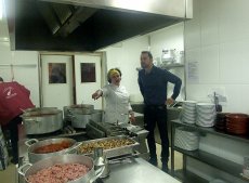 Ya en la mesa, los comensales disfrutaron del menú de esta jornada y que se repetiría este domingo. De primer plato, una alubiada con el compango de la matanza, y para desengrasar, sorbete de limón con polvo de jamón y lágrimas de aceite de oliva virgen extra. El segundo plato será tostón asado con patatas panaderas y ensalada de temporada; y para concluir, un postre de barquillo de crema de queso con mermelada de calabacín, además de café, perrunillas caseras y licores, todo regado con vino tinto Roa Crianza y agua mineral. Todo por un precio de 30 euros.